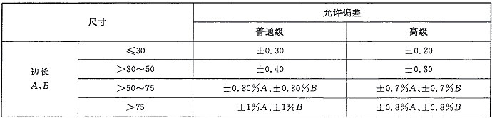 | 邊長尺寸 | 邊凹凸度(不大于) | |