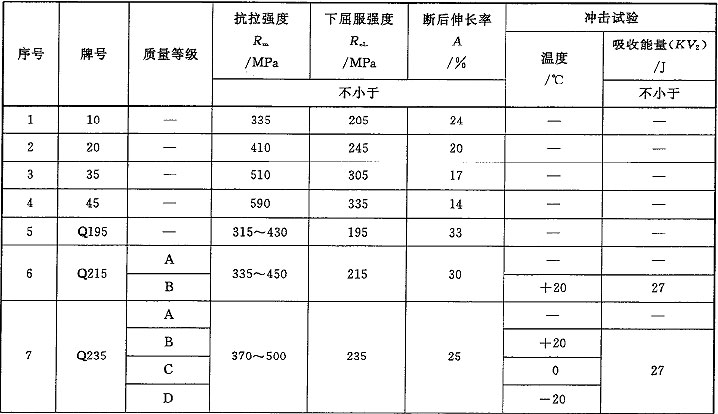 碳素結構鋼的牌號為Q195、Q215和Q235,其化學成分(熔煉分析)應符合GB/T 700的規定。