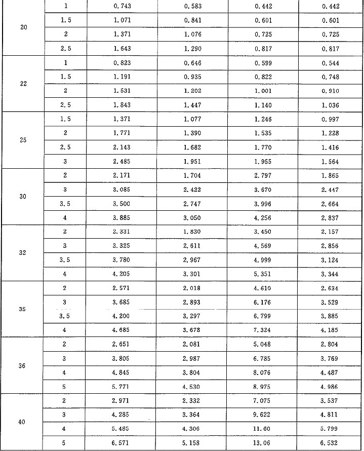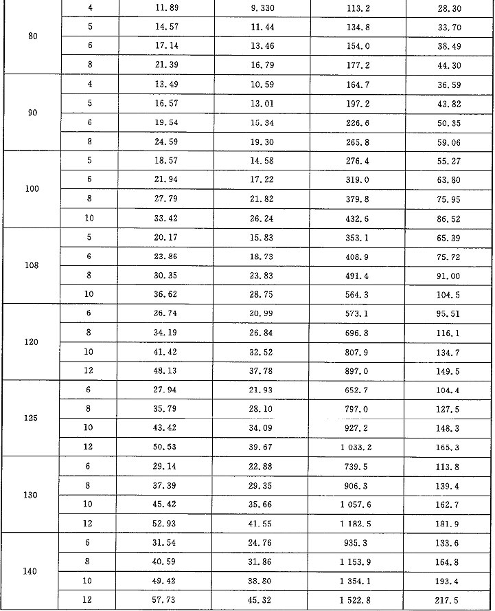 表A.4 平橢圓形鋼管的尺寸、理論重量和物理參數