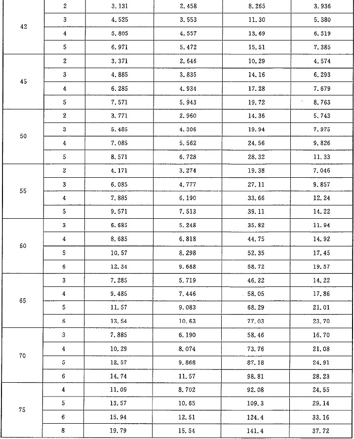 表A.5 內外六角形鋼管的尺寸、理論重量和物理參數