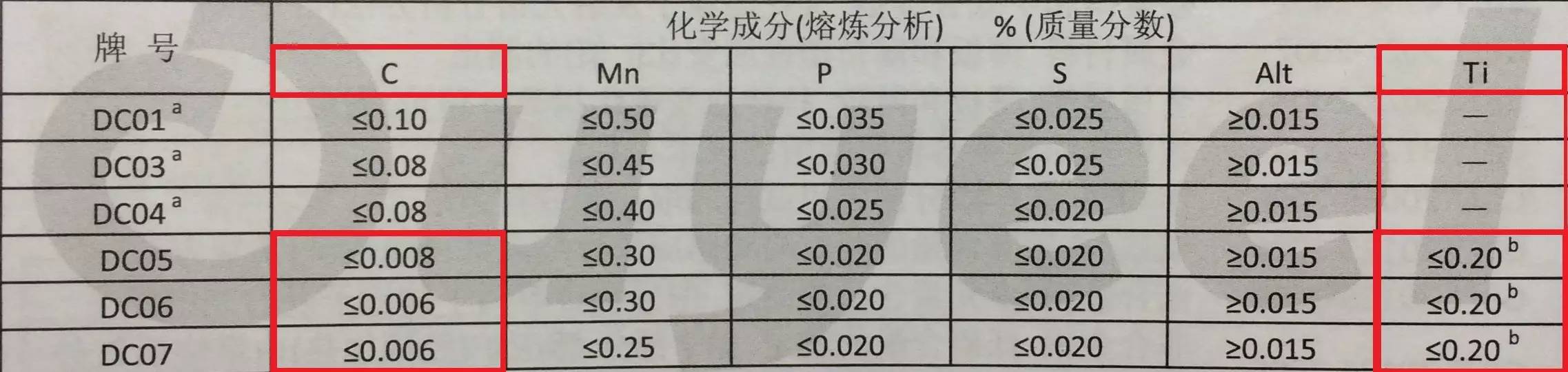 我們看看低碳鋼里哪些牌號符合要求(摘自【歐冶規(guī)范】),照片里已經(jīng)用紅框框出來了:DC05、DC06、DC07,大家回憶下,這幾個牌號是不是“特能沖”呢?