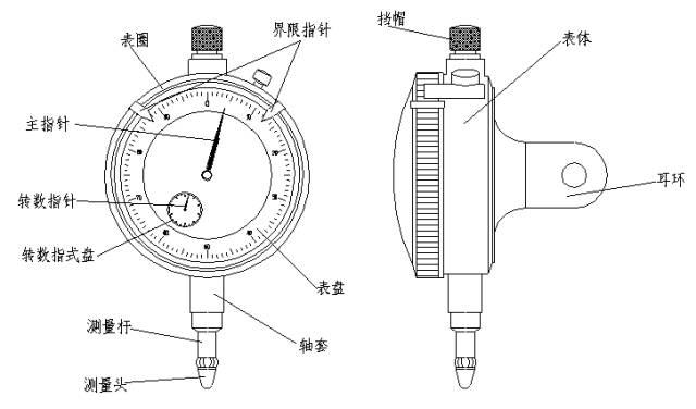 帶有測頭的測量桿,對刻度圓盤進行平行直線運動,并把直線運動轉變為回轉運動傳送到長針上,此長針會把測桿的運動量顯示到圓型表盤上。