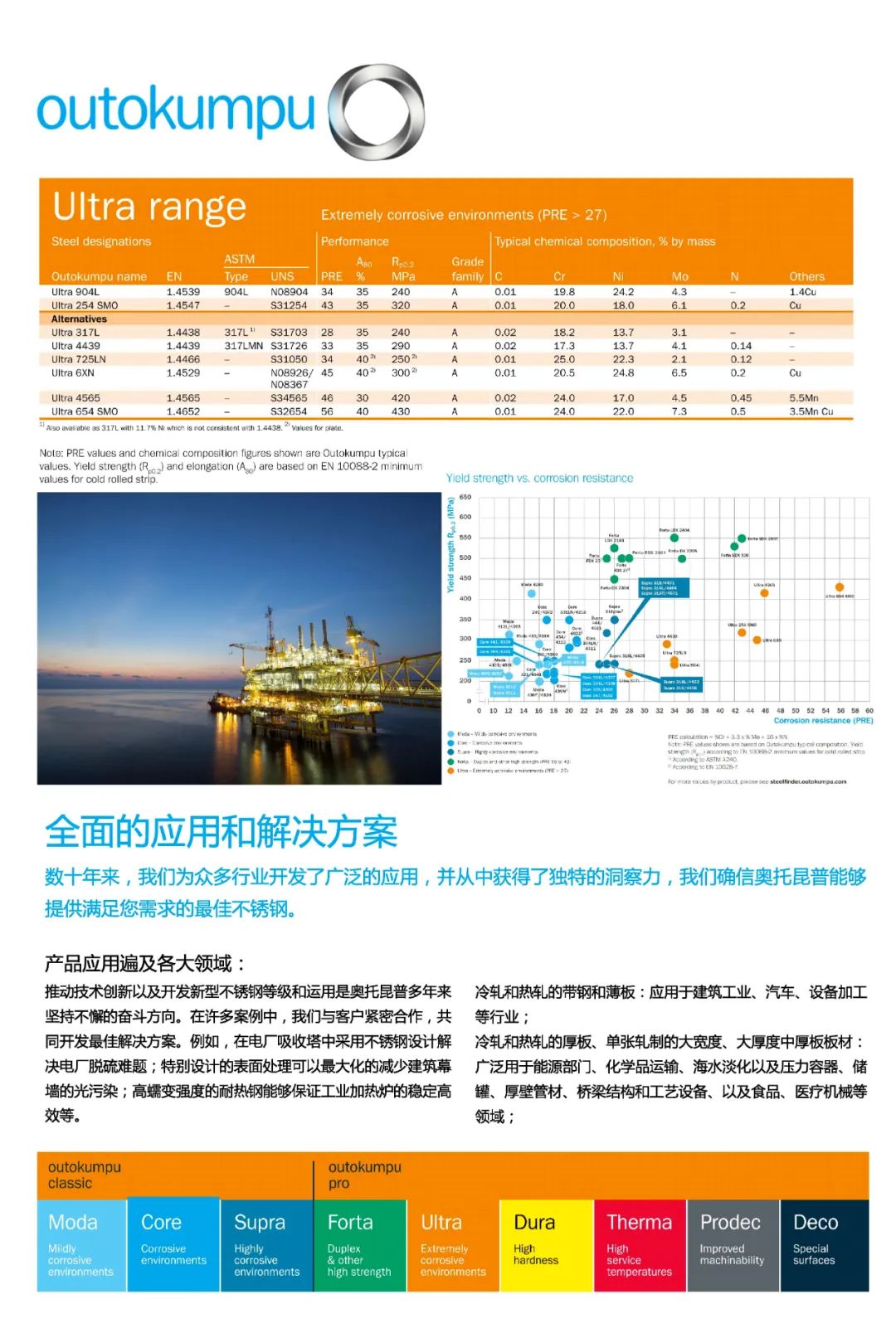 關于 Outokumpu 開發的 Ultra 654SMO詳細介紹,請關注7月3日即將發布的 《第二代超級奧氏體不銹鋼》