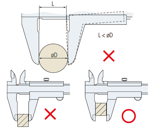 卡尺的讀數(shù)軸和測量軸因不同軸而不符合阿貝原理,所以在使用卡尺時,用量爪的根部或尖端進行測量,會存在加大測量誤差的危險。測量時需注意被測工件盡可能地接近尺身部分(讀數(shù)軸)。