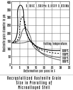 鋼在熱變形過程中發生再結晶。控制這一過程使其發生多次再結晶可導致有效晶粒細化。應當注意每道次軋制應采用的最小變形量,否則將會發生晶粒長大,如44所示。