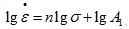 3-2式中A1和n可以由多組試驗(yàn)數(shù)據(jù)代入公式求得,或者通過(guò)在雙對(duì)數(shù)坐標(biāo)圖上繪制應(yīng)力-穩(wěn)態(tài)蠕變速率關(guān)系曲線獲得。