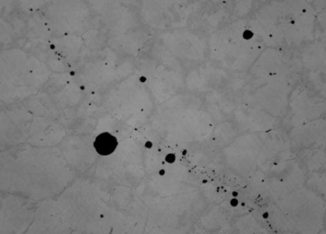 其分類和特征與鑄造制品夾雜基本一致。加工制品夾雜一般呈顆粒狀、長條狀沿加工方向分布,有一定形態和顏色,界面明顯,不用侵蝕即可在金相顯微鏡下發現。