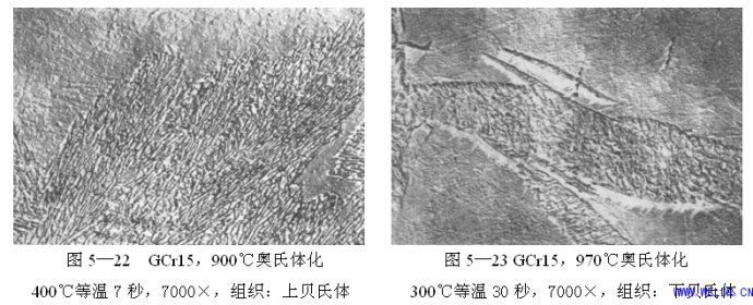 同上,但滲碳體在鐵素體針內(nèi)。過冷奧氏體在350℃~ms的轉(zhuǎn)變產(chǎn)物。其典型形態(tài)是雙凸透鏡狀含過飽和碳的鐵素體,并在其內(nèi)分布著單方向排列的碳化物小薄片;在晶內(nèi)呈針狀,針葉不交叉,但可交接。與回火馬氏體不同,馬氏體有層次之分,下貝氏體則顏色一致,下貝氏體的碳化物質(zhì)點比回火馬氏體粗,易受侵蝕變黑,回火馬氏體顏色較淺,不易受侵蝕。高碳高合金鋼的碳化物分散度比低碳低合金鋼高,針葉比低碳低合金鋼細。