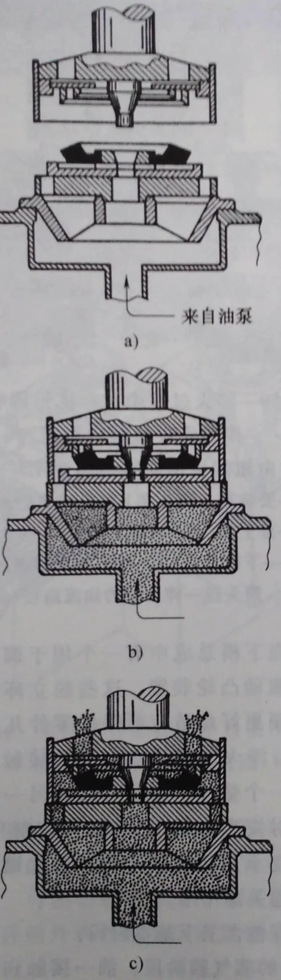 c) 開始定時周期,油流開始進入淬火室和零件周圍