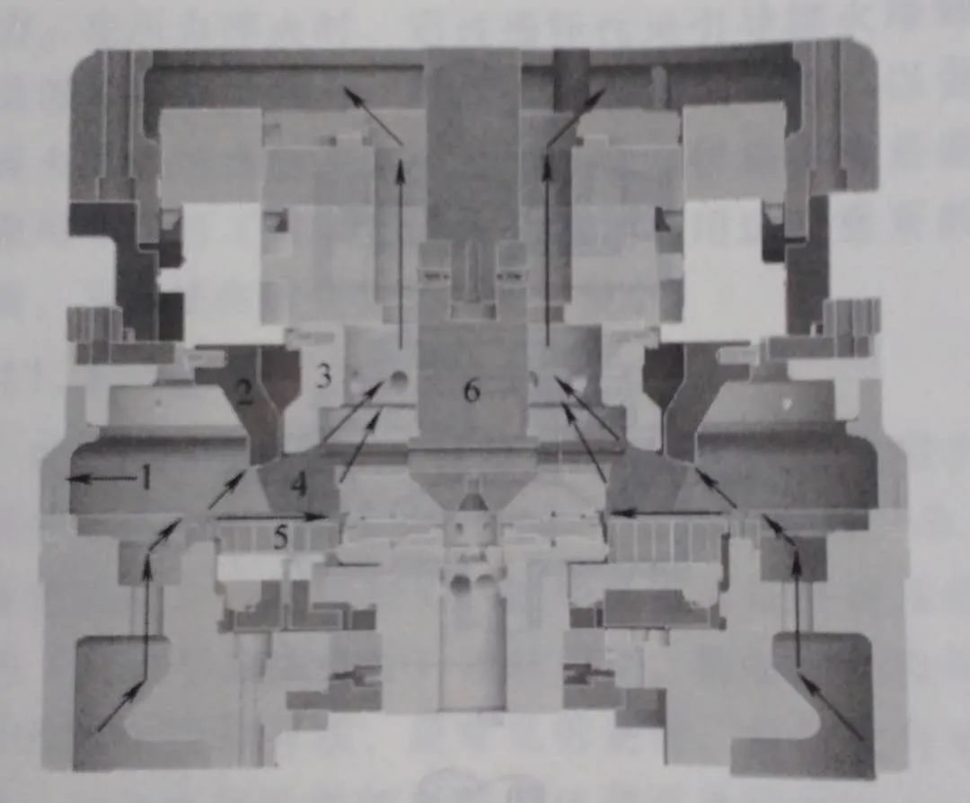 圖7 所示為在淬火室中建立的淬火油循環(huán)路徑的例子。