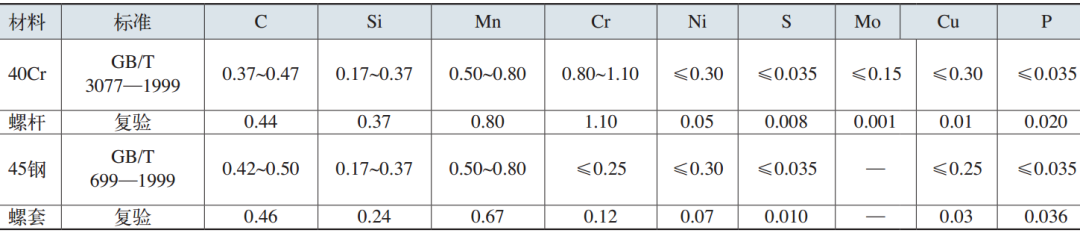 零件熱處理后基體硬度不足,除熱處理工藝控制不當外,還應考慮零件的原材料化學成分,尤其是碳含量的影響。對失效螺桿、螺套進行化學成分檢測,結果見表3,分析結果表明螺桿與螺栓所用材料均與設計標準要求相符。表3 螺桿、螺套原材料化學成分(質量分數) (%)