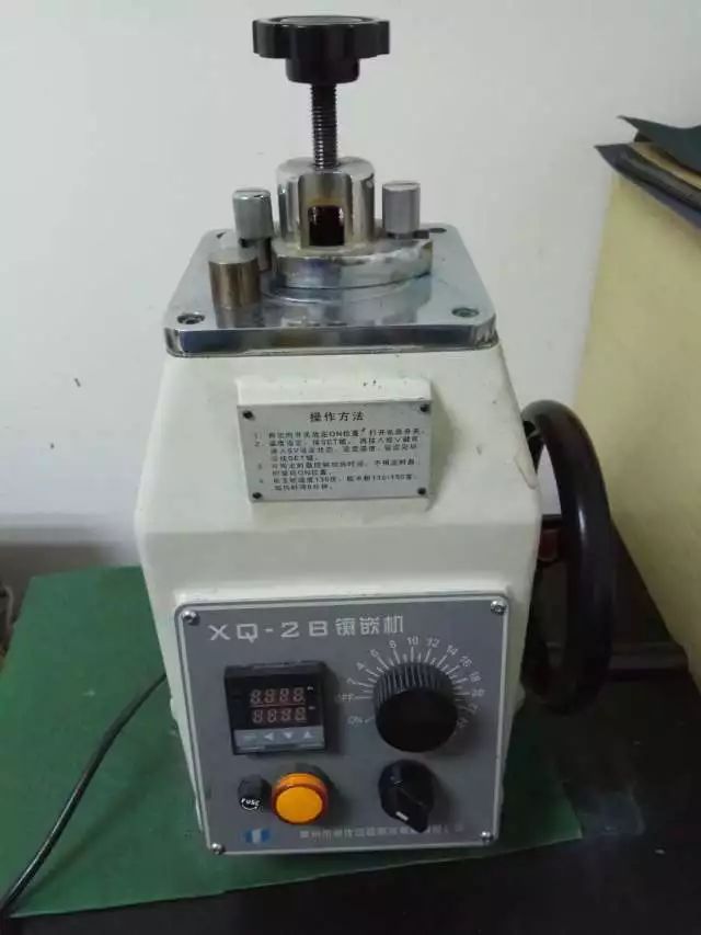金相試樣的鑲嵌,是利用熱塑性塑料(如聚氯乙烯),熱凝性塑料(如膠木粉)以及冷凝性塑料(如環氧樹脂+固化劑)作為填料進行的。前兩種屬于熱鑲填料,熱鑲必須在專用設備一鑲嵌機上進行。第三種屬于冷鑲填料。
