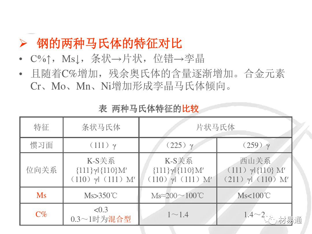 (本平臺"常州精密鋼管博客網"的部分圖文來自網絡轉載,轉載目的在于傳遞更多技術信息。我們尊重原創,版權歸原作者所有,若未能找到作者和出處望請諒解,敬請聯系主編微信號:steel_tube,進行刪除或付稿費,多謝!)什么是馬氏體相變?有什么基本特點?今天我們就通過一組PPT學習一下: