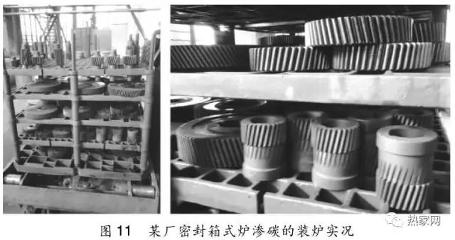 圖11所示某廠滲碳齒輪的裝爐狀況,其目的是盡可能多裝,這種操作方法,單位能耗很低,似乎非常先進。但是社會總能耗是低了還是高了?齒輪壽命低,不僅是熱處理能耗而且把前面煉鋼、鍛造的能耗、機械加工都賠進去了。因此應該全面地、辯證地看待熱處理單位能耗。表1中產品單位使用時間的總制造能耗。