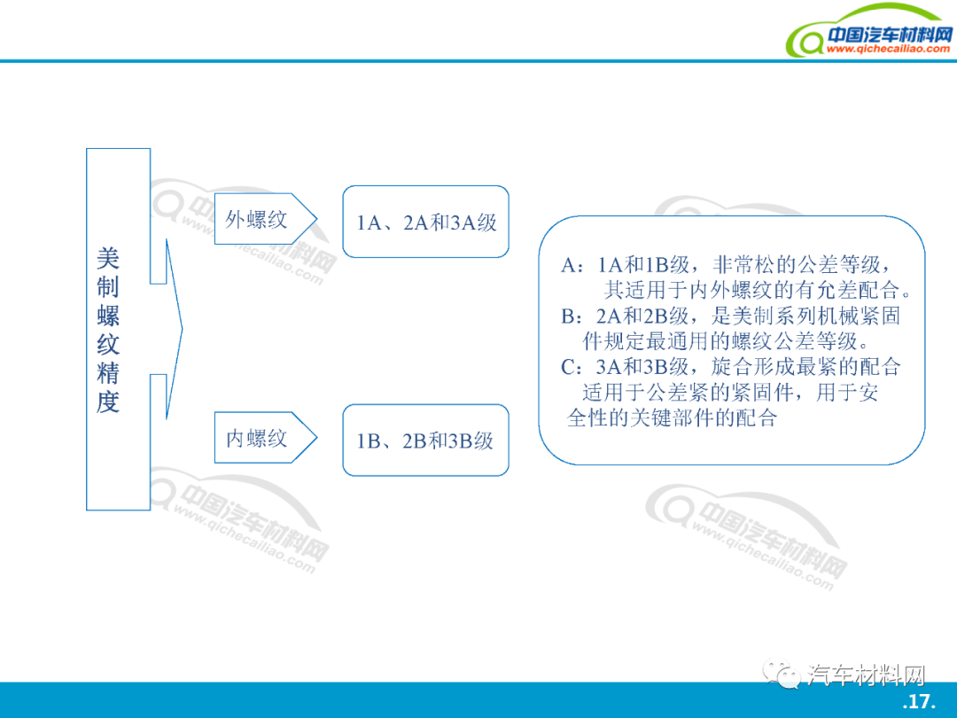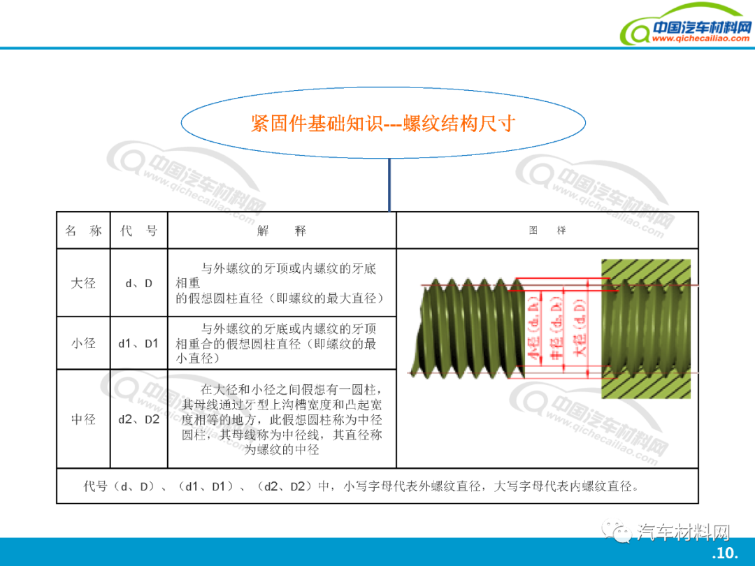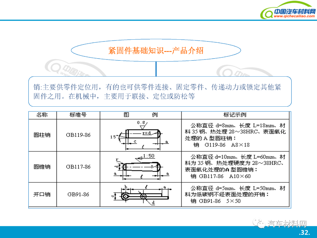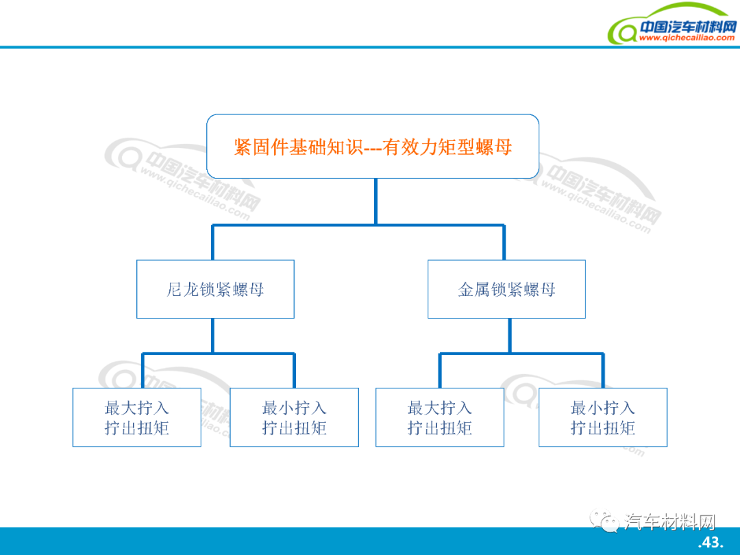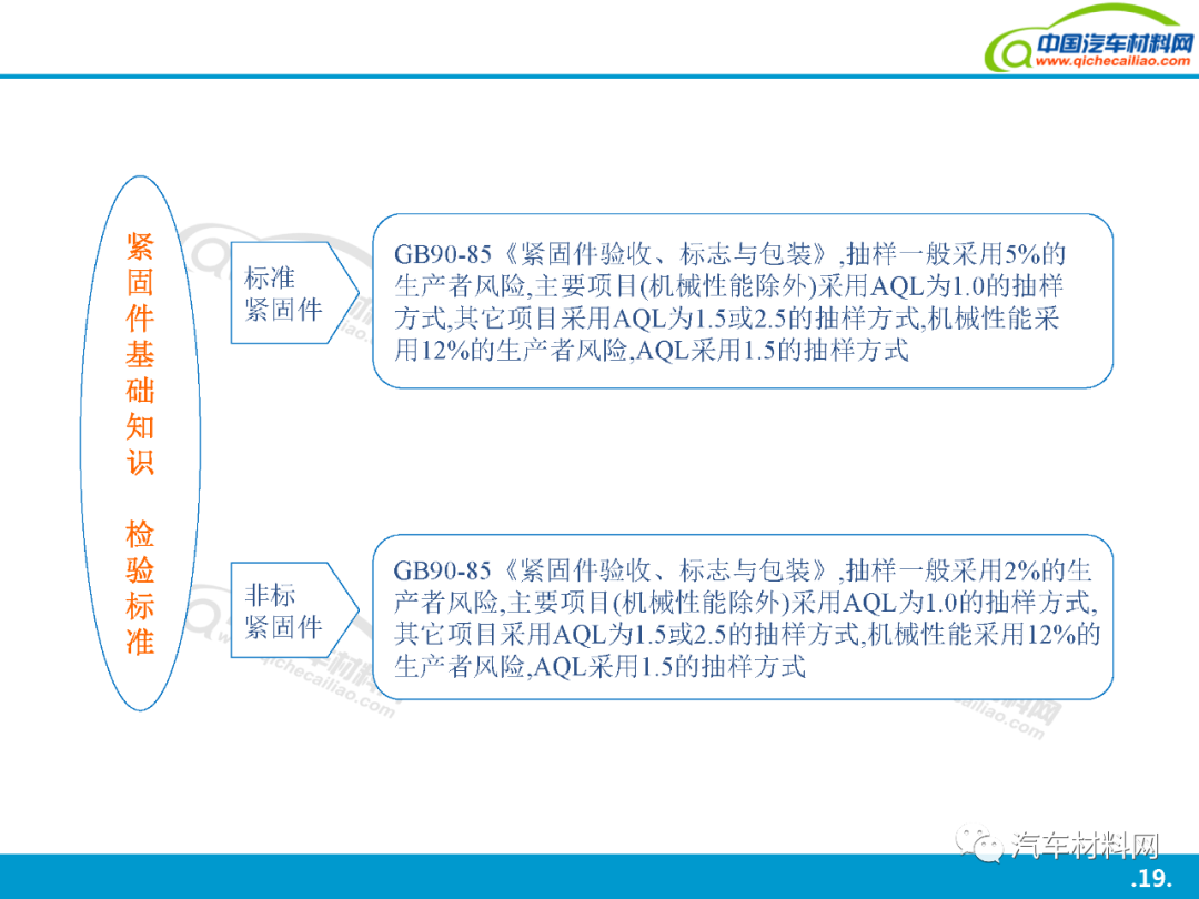 本站之有發(fā)表過(guò): 汽車上每個(gè)零件圖普 珩磨管工藝及其在汽車零部件制造中的應(yīng)用工藝介紹 中國(guó)到底有多少汽車工廠? 汽車金屬的腐蝕及防腐方法 汽車用金屬材料(碳鋼、合金鋼、鑄鐵)知識(shí)點(diǎn)全解析 全球最牛的十大汽車零部件供應(yīng)商簡(jiǎn)介 汽車零部件熱處理車間的管控技術(shù) 上海汽車產(chǎn)業(yè)鏈全景圖(含300家汽車零部件企業(yè)介紹) 等文章, 大家都說(shuō)好. 今天我們?cè)賮?lái)一起學(xué)習(xí)一下: 汽車緊固件詳解, 希望對(duì)大家有用. 共44頁(yè)P(yáng)PT