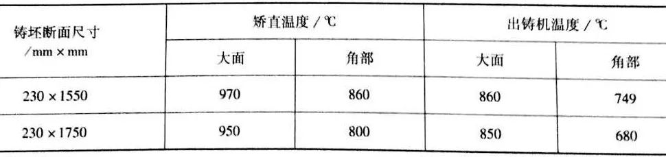對澆鑄Q345C 鋼時的二冷段矯直區溫度和出鑄機處的溫度進行了測試,結果