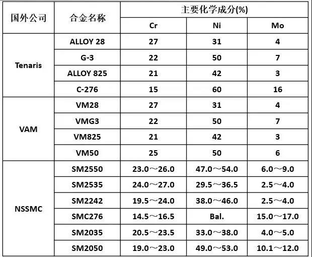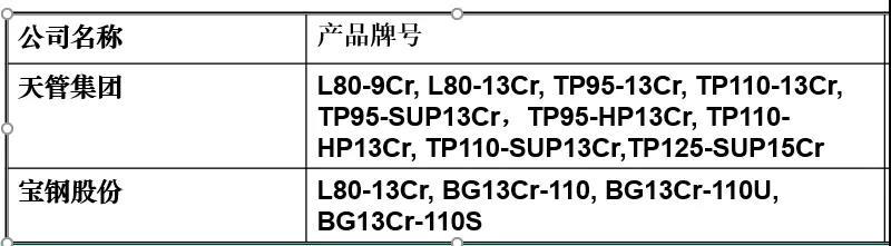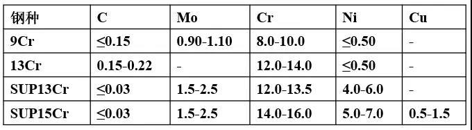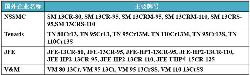 對(duì)于抗CO2腐蝕,API Spec 5CT列有L80-9Cr、L80-13Cr兩個(gè)鋼級(jí),而各生產(chǎn)廠均建立了自己的非API鋼級(jí)系列。如日本的JFE、住金,國(guó)內(nèi)天管集團(tuán)、寶鋼等。