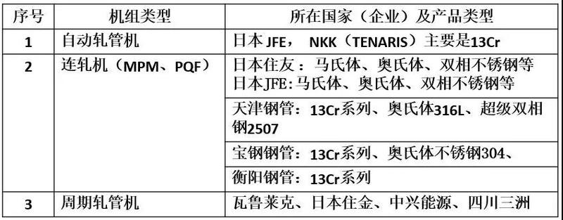 5.2 國(guó)內(nèi)外熱軋不銹鋼管(高合金管)的機(jī)組