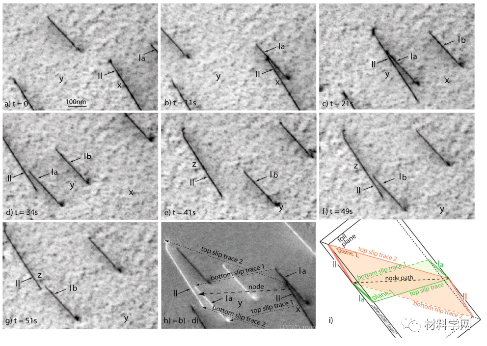 圖3.耦合滑移的原位TEM觀察:不同時間步長的位錯滑移的實驗觀察