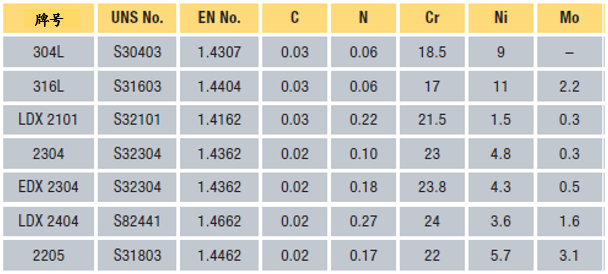 雙相不銹鋼儲罐由于強度高,制造成本低于奧氏體不銹鋼或碳鋼儲罐。如果考慮全生命周期成本,則其成本優(yōu)勢更加明顯。儲罐設(shè)計人員最常選用的是鉬含量為0.3-0.5%的經(jīng)濟型雙相不銹鋼,如果是腐蝕性較強的環(huán)境,則采用鉬含量更高的牌號。
