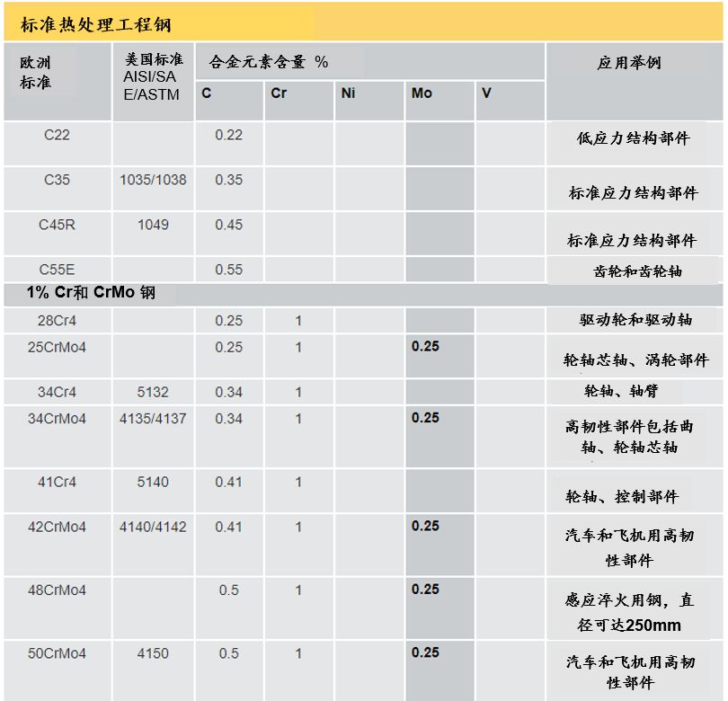然后是一系列 1%Cr 和 1%Cr/0.25%Mo 鋼,碳含量再次從0.25%提高到0.55%;