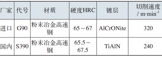 表4  兩種刀具參數(shù)值