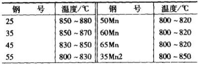 工件正火時,一般規定表面終冷溫度為:碳素結構鋼、低合金結構鋼不高于250~40°℃; 高、中合金結構鋼、模具鋼,不高于200~350°C。