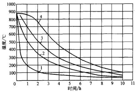 空冷或鼓風冷的冷卻能力比水冷、油冷小得多,故在一定程度內可避免鍛件內部缺陷的擴大,但空冷時鍛件的性能潛力不能充分發揮。圖12 、圖13 是大鍛件的空冷曲線。
