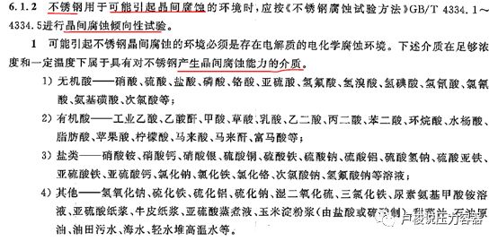 不銹鋼的晶間腐蝕傾向試驗(yàn)是設(shè)計(jì)文件中常見的內(nèi)容,HG/T 20581等標(biāo)準(zhǔn)中的相關(guān)內(nèi)容也比較明確。而水壓試驗(yàn)或操作介質(zhì)中的氯離子含量,也是奧氏體不銹鋼設(shè)備設(shè)計(jì)時(shí)關(guān)注的基本內(nèi)容。除氯離子外,像濕硫化氫、連多硫酸及其他一些可能產(chǎn)生硫化物環(huán)境,也能夠引起奧氏體不銹鋼的應(yīng)力腐蝕開裂。