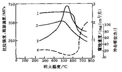 強度強烈地影響馬氏體不銹鋼的應力腐蝕開裂行為。淬火狀態下其應力腐蝕開裂的傾向很大,隨著回火溫度的升高,應力腐蝕抗力顯著得到改善,但是對于Cr12型馬氏體不銹鋼,在400-550℃溫度區間回火時,由于M23C6型碳化物的析出造成基體局部貧鉻,會出現應力腐蝕抗力低谷。見圖10 。