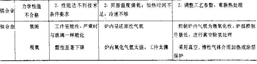 有色金屬因為熱處理不當,引起力學性能不合格的常見原因及防止方法見表3 。