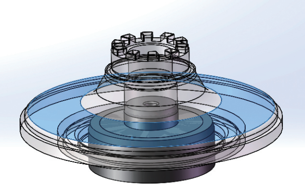 注意事項(xiàng):感應(yīng)器調(diào)整過(guò)程中,注意感應(yīng)器底平面與零件端面間隙1.5~2mm,各處間隙均勻;定期清理有效加熱面的氧化皮。不足之處:異形感應(yīng)器對(duì)于零件吸引力較大,加熱過(guò)程中將零件吸起會(huì)造成無(wú)法生產(chǎn),因此需要將常規(guī)的孔軸配合式夾具(見(jiàn)圖6)更換為氣動(dòng)卡盤(pán)裝夾(見(jiàn)圖7),這樣就需要卡盤(pán)防水等級(jí)較高,同時(shí)需要對(duì)感應(yīng)器有效圈強(qiáng)度進(jìn)行加強(qiáng),否則容易導(dǎo)致有效圈變形。