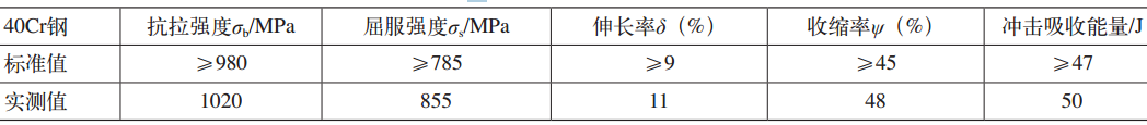 在原材料上截取標(biāo)準(zhǔn)樣棒,進(jìn)行力學(xué)性能試驗。試驗結(jié)果(見表2)表明,原材料的力學(xué)性能符合材料標(biāo)準(zhǔn)要求,但實測值大多在標(biāo)準(zhǔn)范圍的下限。