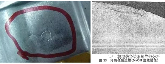 該缺陷在侵蝕后的低倍試樣上,多呈凸起的的邊界輪廓清晰的暗褐色塊狀、針狀聚集物,其顯微組織為形狀規則的粗大化合物,斷口上呈閃耀反光的