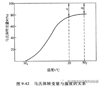 高碳鋼和許多合金鋼的MS點在室溫以上,而Mf點在室溫以下,則淬火冷卻到室溫將保留相當數量未轉變的奧氏體,這個部分叫殘留奧氏體;如果為使殘留奧氏體全部轉變“冷處理”,可以放入液氮中處理。