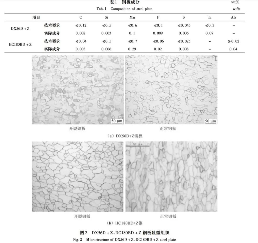 分別從現場取回正常鋼板和焊縫開裂鋼板,從成分、