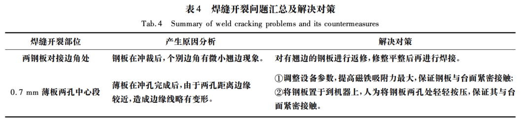藝和調整合理的焊接工藝參數等措施,解決了激光拼焊焊縫開裂問題,產品合格率達 99.15% ,滿足了客戶的需求。