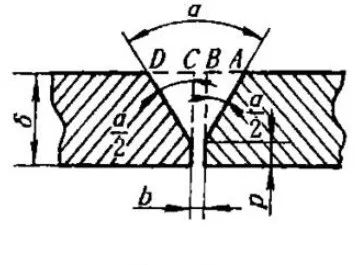 如圖1所示帶鈍邊V形坡口焊縫,坡口角度為α,間隙為b,鈍邊為P,根據(jù)解三角形的方法: