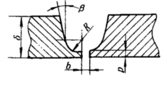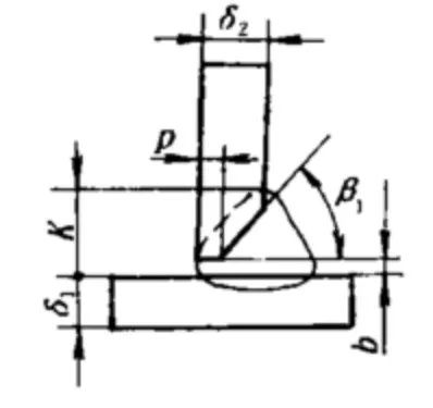 焊腳尺寸K=(δ2-P)tanβ1+b+e≈1.2δ2+1.5  (5)
