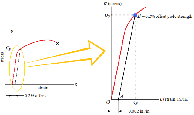 實際上,很難確定材料從彈性區轉變為塑性區的確切點。如圖2,繪制了應變為0.002的平行線。用該線截斷應力-應變曲線,將屈服的應力確定為屈服強度。屈服強度等于發生明顯塑性變形的應力。大多數材料并不均勻,也不是完美的理想材料,材料的屈服是一個過程,通常伴隨著加工硬化,所以不是一個具體的點。