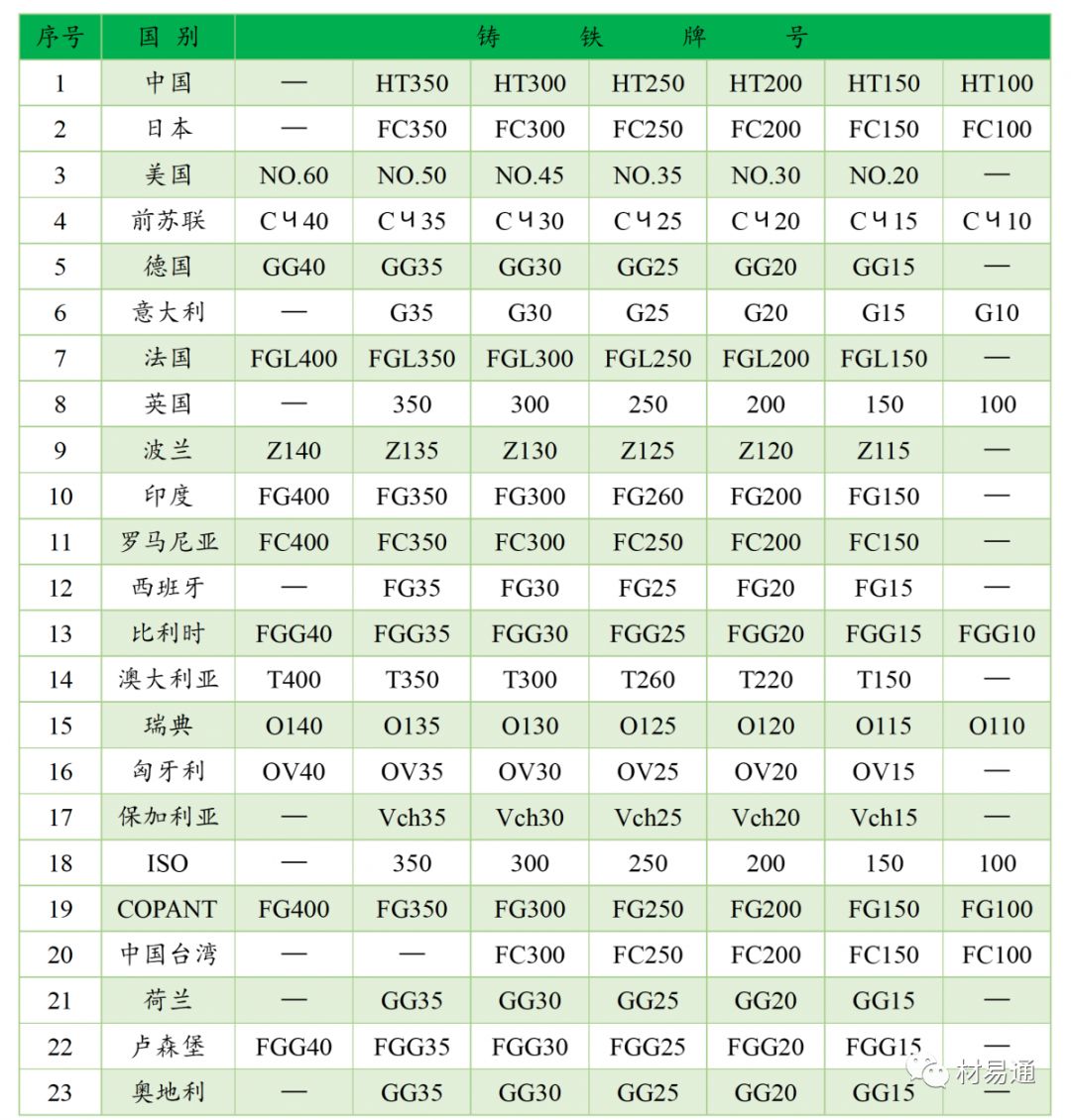 灰鑄鐵中外牌號對照