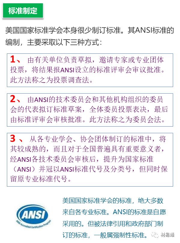 美國有多家學會、協(xié)會從事金屬標準化工作,其中涉及金屬材料的標準化機構(gòu)就超過20個,大家比較熟知的有:ANSI(美國國家標準)、ASTM(美國材料與試驗學會標準)、ASME(美國機械工程師協(xié)會標準)、AISI(美國鋼鐵學會標準)等。