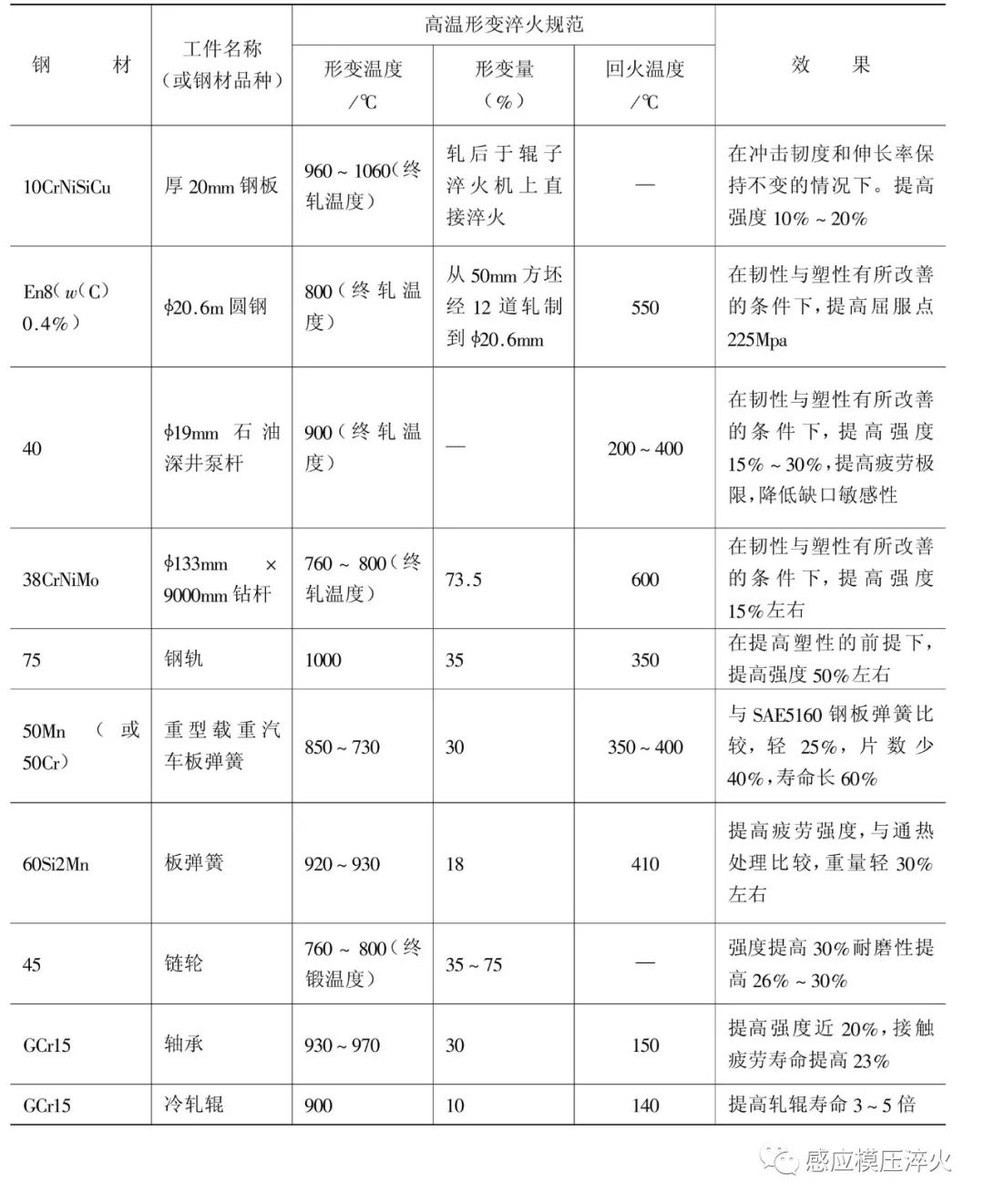 高溫形變淬火工藝的應(yīng)用實(shí)例如表2-6-3所示。