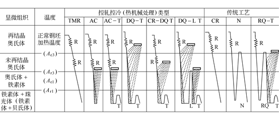 控制軋制(CR)技術(shù)是不斷發(fā)展的,通常控制軋制后都采用加速冷卻,甚至熱軋后由高溫奧氏體區(qū)直接淬火也被廣泛應(yīng)用。