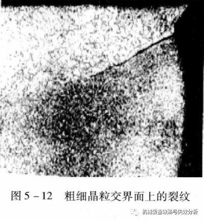 耐熱鋼和高溫合金對晶粒不均勻特別敏感,使得螺栓的持久性能和疲勞性能顯著降低,螺栓在裝配或工作應(yīng)力的作用下,裂紋在粗細晶粒交界處產(chǎn)生并擴展。裂紋在螺栓頭桿部粗細晶粒交界處產(chǎn)生并擴展特征見下圖。