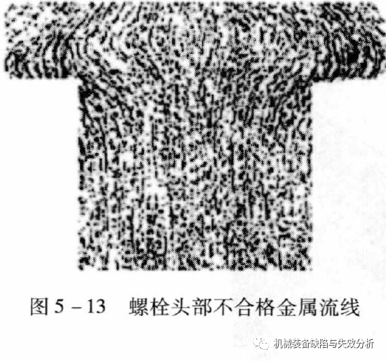 成形工藝不當,造成緊固件頭部金屬流線不合格,下圖給出了螺栓頭部金屬流線沒有沿螺栓頭部外形分布特征。