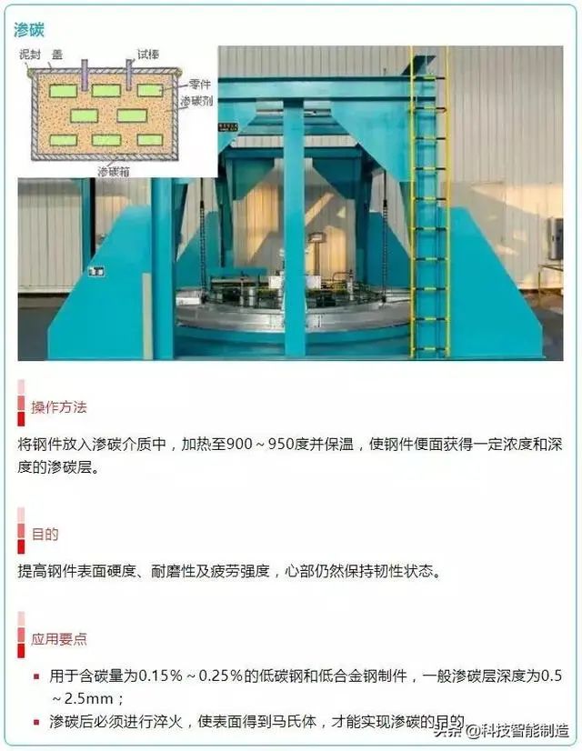 7.化學熱處理:化學熱處理是通過改變工件表層化學成分、組織和性能的金屬熱處理工藝。化學熱處理是將工件放在含碳、氮或其它合金元素的介質(氣體、液體、固體)中加熱,保溫較長時間,從而使工件表層滲入碳、氮、硼和鉻等元素。
