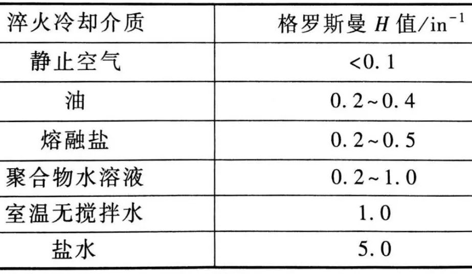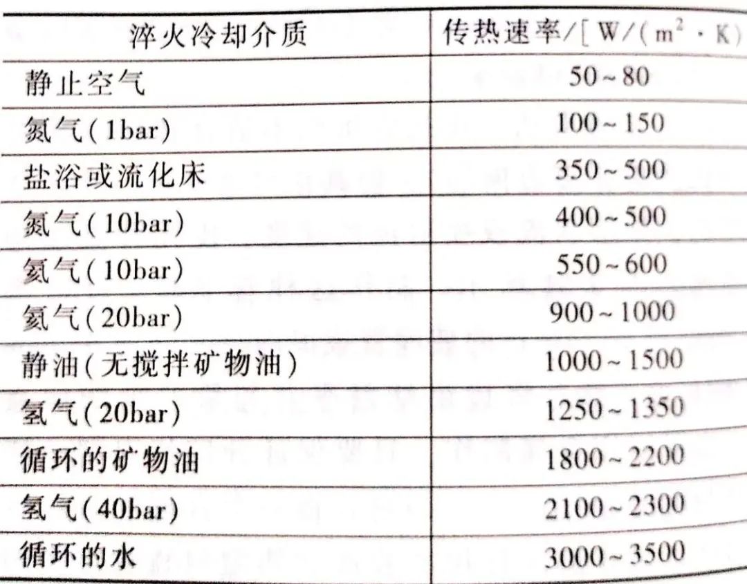 ▼表1 各種淬火冷卻介質的典型傳熱系數