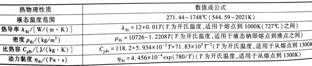 因為無毒、物理性能與熔融鉛類似,有人研究了將鉍作為一種替代鉛的淬火冷卻介質的可能性。熔融鉍的熱物理性質見表7 所示。