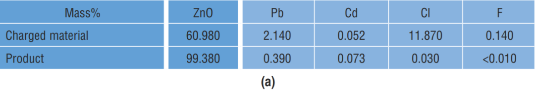 2總結(jié)了步驟2的結(jié)果。步驟2后,只有ZnO信號被XRD檢測到,且ZnO純度超過99%,特別是F含量可以降低到足夠低的水平。
